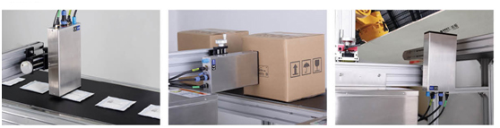 多套墨路通过级连方式实现单套系统统一控制。L系列为功能升级预留了可能,多维度精细调节支架可实现360度任意方向喷印,用最少投入实现产线适配。 大面积喷印 ,减少预印纸箱种类。